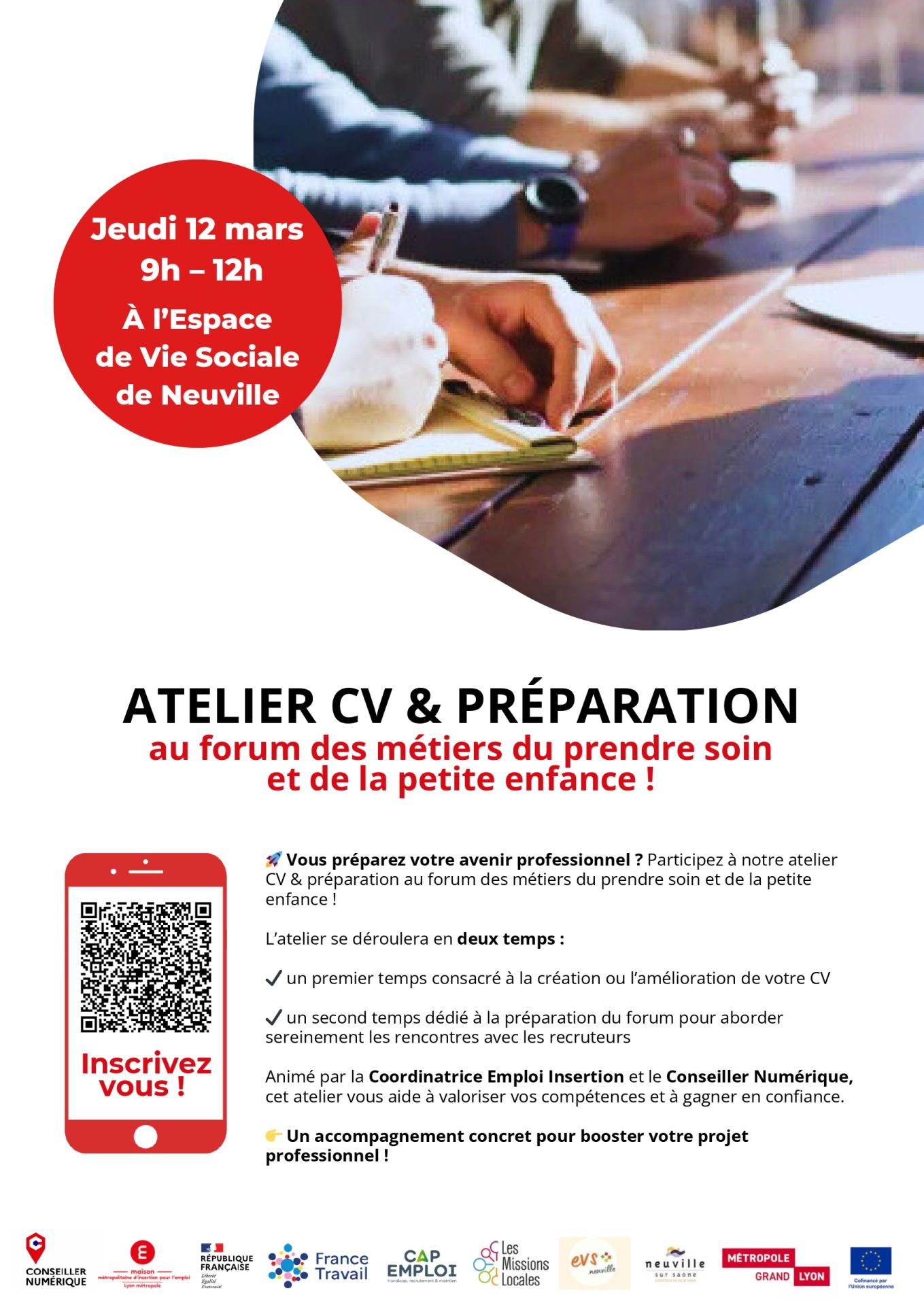 En amont de ce forum, la MMI’e et la ville de Neuville organisent un atelier de préparation à la visite du forum pour des demandeurs d’emploi intéressés par ces métiers le 12 mars 2026 de 9 h à 12 h.