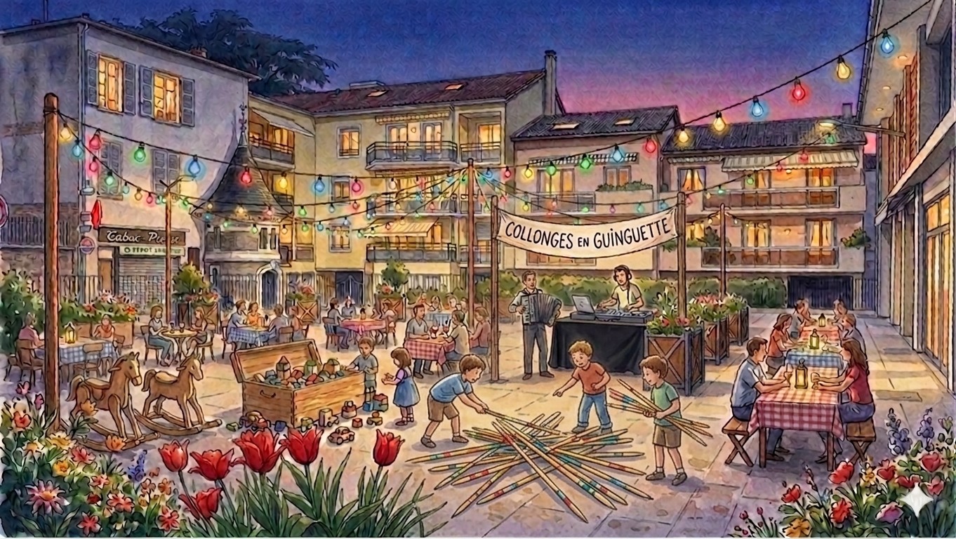 Accordéoniste et DJ / Jeux en bois du Comité des Fêtes / Blindtest / Buvette et restauration par les commerçants de Collonges / Report au vendredi 29 mai en cas de pluie