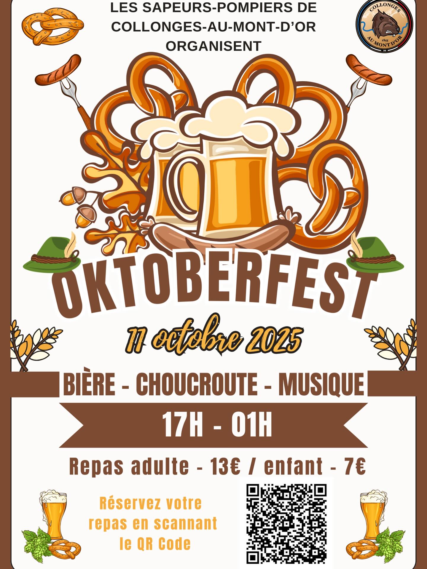 L’Amicale des Sapeurs Pompiers organise une soirée Oktoberfest, le samedi 11 octobre à partir de 17 h au parc de la Jonchère (sous un espace chauffé !). Préparez-vous à une soirée festive et conviviale !