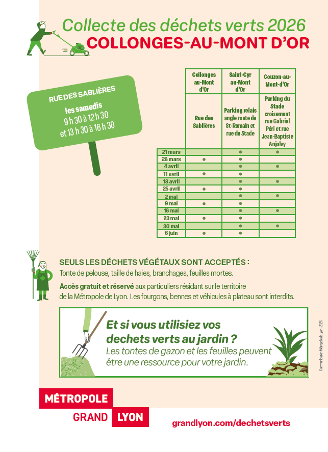 Taille de haies, tontes, feuilles, élagage… À l’approche du printemps, les espaces verts nécessitent bien souvent de l’entretien ! Pour atténuer la fréquentation dans certaines déchèteries de l’agglomération et offrir un service de proximité aux habitants, la Métropole de Lyon met en place des points de collecte pour vos déchets verts.